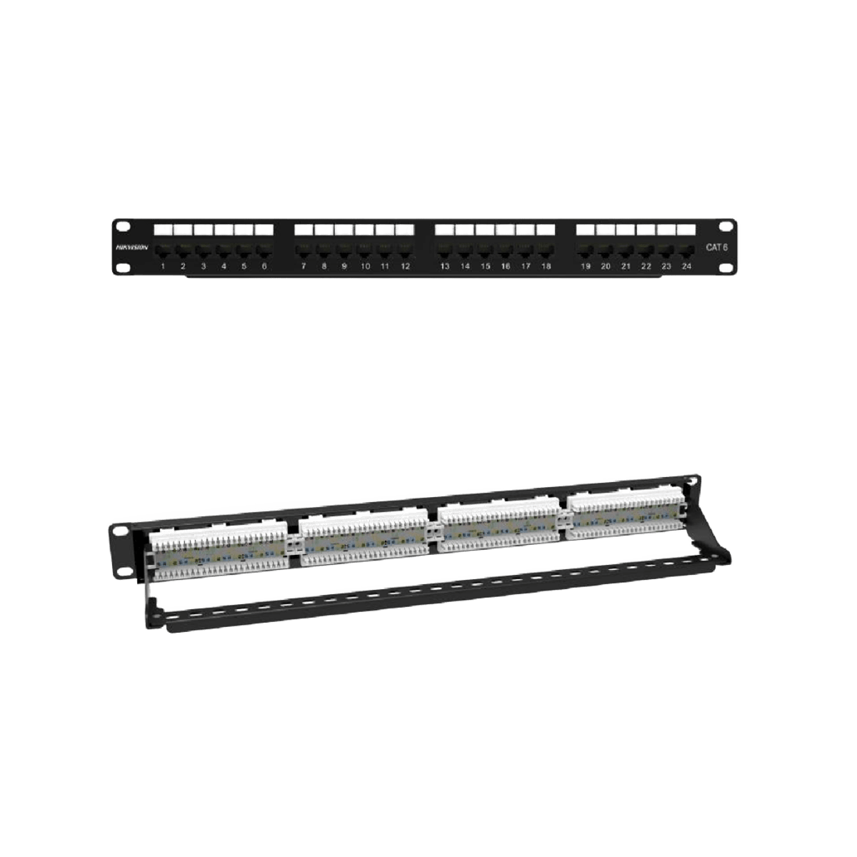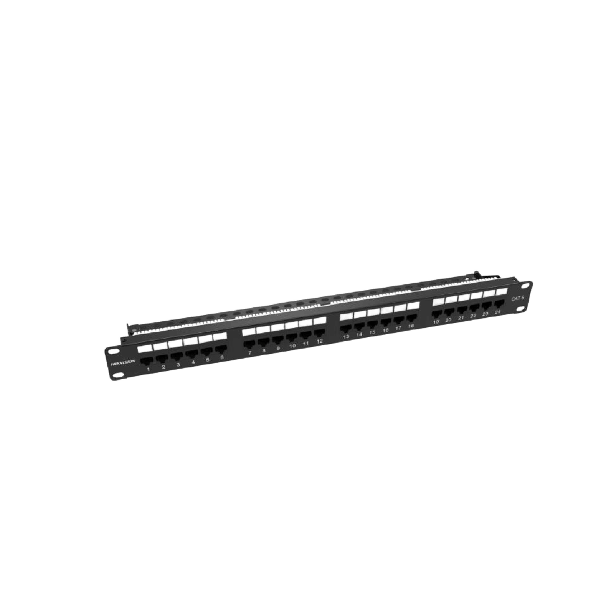 El patch panel Hikvision DS-1CP6U24-1U-BLACK es un panel de terminación diseñado para organizar y administrar cables de red en sistemas de cableado estructurado, ofreciendo una instalación ordenada y profesional en racks de telecomunicaciones.
